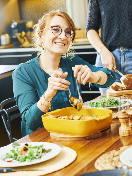 Bring a touch of nature to your table with Peugeot's ceramic oven dish and there glossy finishes. This ceramic dish is just the ticket for baking melt-in-the-mouth vegetable gratins and lasagnas. The enamel means that the dish can easily be hand-washed or cleaned in the dishwasher, and the colour will lose none of its sparkle or intensity over time. Every detail has been carefully designed to make everyday life easier, such as the wide striated handles for effortlessly carrying the dish from the oven to the table, and its rounded corners for making serving and cleaning child's play.