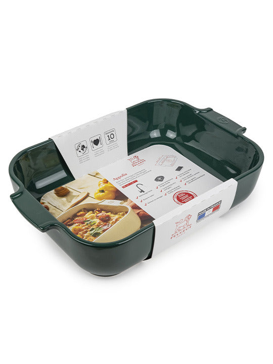 Bring a touch of nature to your table with Peugeot's ceramic oven dish and there glossy finishes. This ceramic dish is just the ticket for baking melt-in-the-mouth vegetable gratins and lasagnas. The enamel means that the dish can easily be hand-washed or cleaned in the dishwasher, and the colour will lose none of its sparkle or intensity over time. Every detail has been carefully designed to make everyday life easier, such as the wide striated handles for effortlessly carrying the dish from the oven to the table, and its rounded corners for making serving and cleaning child's play.
