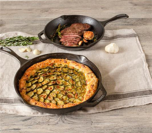 Versatile cast iron sets offering essential pieces for searing, baking and slow cooking. Durable collections designed for lifelong use.