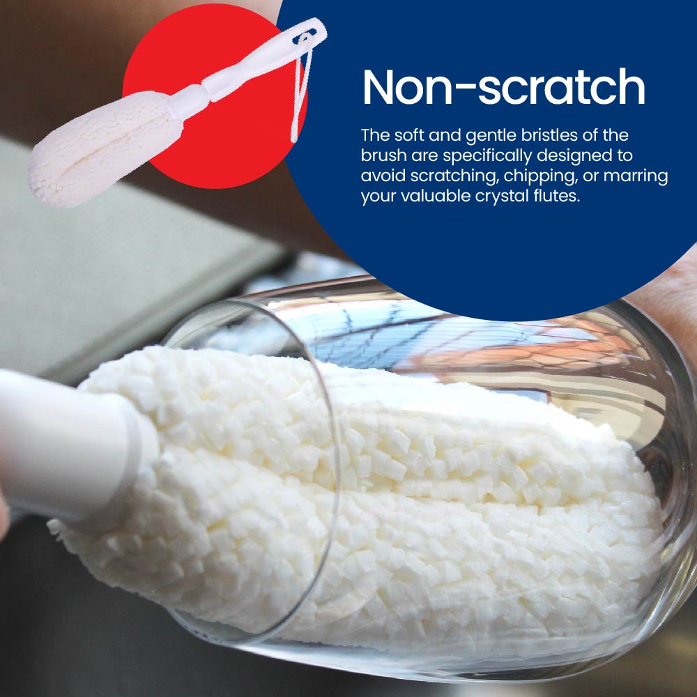 The soft, gentle bristles are tailored to clean without scratching, chipping, or damaging your valuable crystal flutes. Your stemware remains pristine, retaining its clarity and brilliance.
