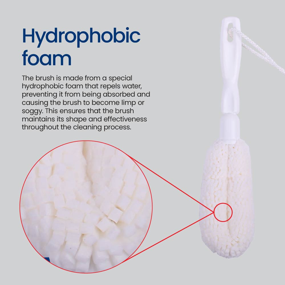 Made from a special hydrophobic foam that repels water, this brush stays firm and effective, avoiding the limpness that can occur with traditional brushes. It ensures consistent cleaning performance throughout the process.