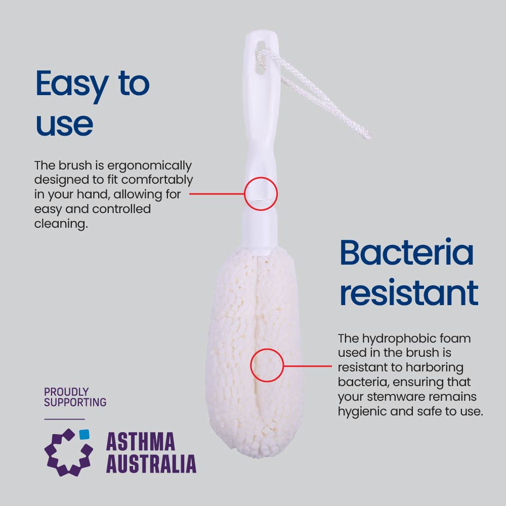 The brush’s ergonomic design fits comfortably in your hand, providing ease and control while cleaning. Its shape is specifically tailored to navigate the intricate curves and angles of crystal stemware, ensuring a complete and effective clean.