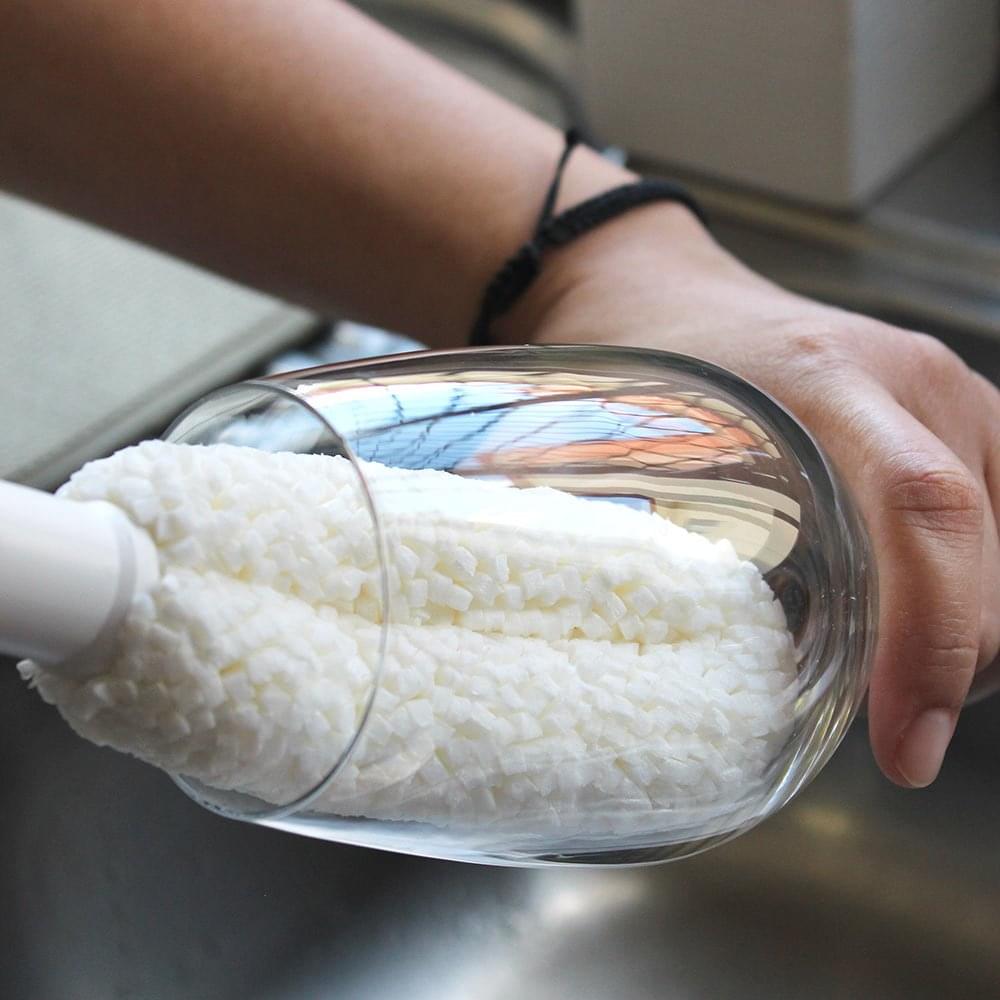 A specialized tool designed to keep your valuable crystal flutes in immaculate condition. Crafted with unique hydrophobic foam, this brush offers exceptional cleaning while safeguarding the delicate surface of your stemware.