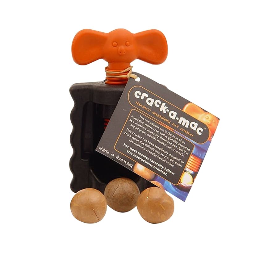 Unlock the flavour of the world’s hardest nut with the Crack-A-Mac — the original Australian-made macadamia nut cracker. Designed and hand-assembled in Queensland, this durable tool makes light work of macadamias and other tough-shelled nuts. Its compact, mess-free design keeps shells contained while the unique koala-shaped crank handle delivers smooth, effortless cracking.