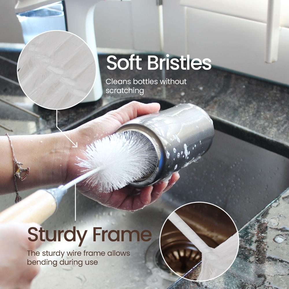 The soft bristles effectively scrub the sides of your bottles without causing any scratches or damage. You can confidently use it on all your bottles, vases, and jars, knowing that your delicate glassware will remain pristine.