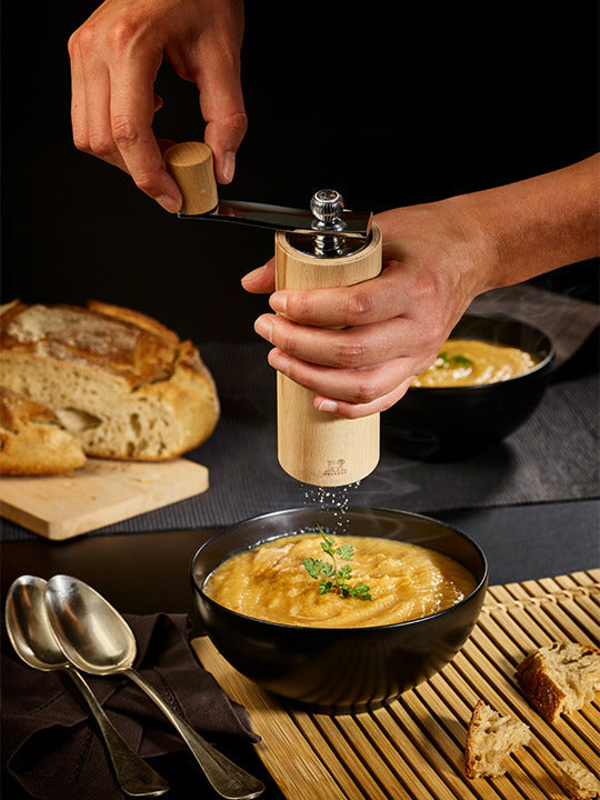 The Isen salt mill is a model of elegance. With the delicate curve of its handle and the precision of its grind adjustment, this will be the ideal companion for all your best cooking or dining moments. This salt mill with a wooden handle is produced in France by Peugeot.
