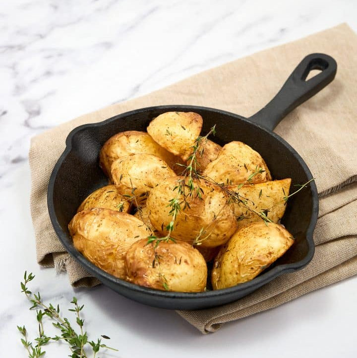 The compact 16cm size is ideal for smaller portions, individual dishes, and side preparations such as frying eggs, searing small cuts of meat, or roasting vegetables. Cast iron holds heat exceptionally well, helping develop strong caramelisation and rich flavour while maintaining steady cooking temperatures.