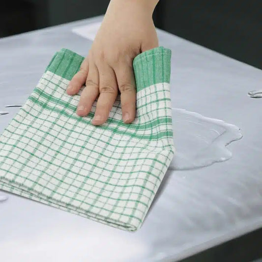 The collection includes tea towels, glass cloths, cleaning cloths, and kitchen textiles designed for drying, polishing, and general kitchen use. Built for busy hospitality environments, these cloths are durable, absorbent, and suitable for repeated washing.