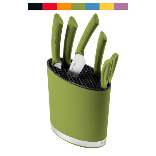 The Scanpan Spectrum collection delivers vibrant colour, modern design, and everyday performance for the contemporary kitchen. Each tool is crafted for reliability, from high-carbon stainless steel knives with protective covers to smart peelers, shears, cutting boards, and knife blocks designed for safe, efficient prep.