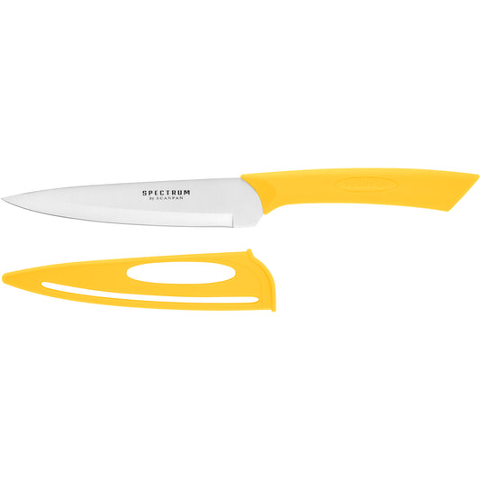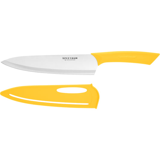 The Scanpan Spectrum collection delivers vibrant colour, modern design, and everyday performance for the contemporary kitchen. Each tool is crafted for reliability, from high-carbon stainless steel knives with protective covers to smart peelers, shears, cutting boards, and knife blocks designed for safe, efficient prep.