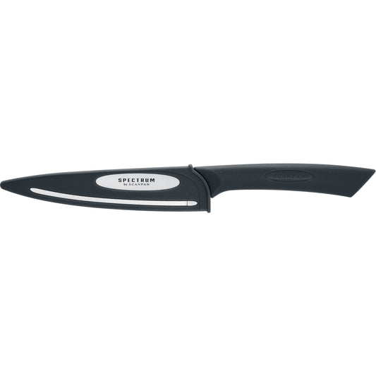 The Scanpan Spectrum collection delivers vibrant colour, modern design, and everyday performance for the contemporary kitchen. Each tool is crafted for reliability, from high-carbon stainless steel knives with protective covers to smart peelers, shears, cutting boards, and knife blocks designed for safe, efficient prep.