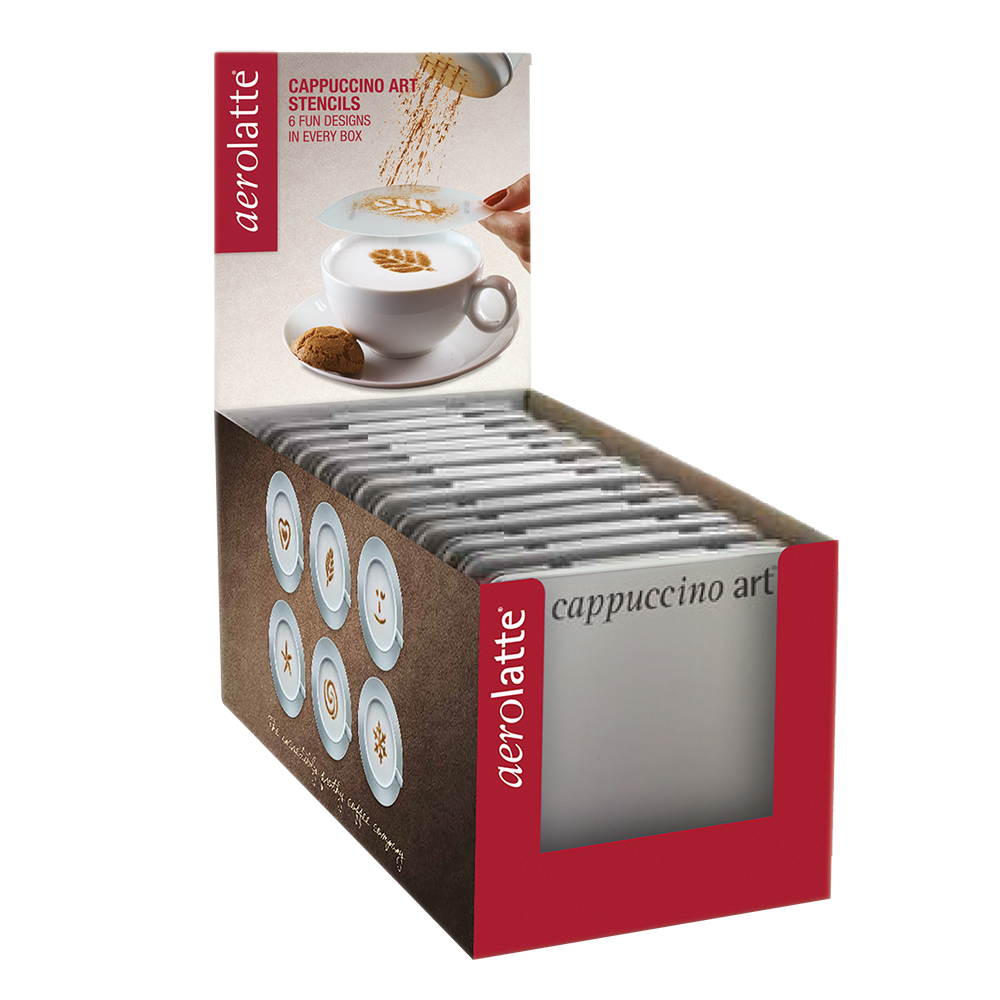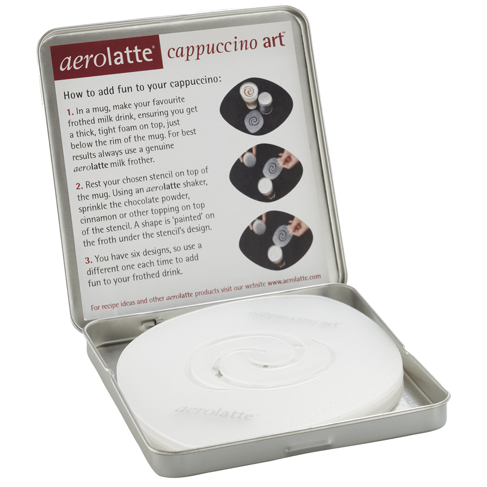 The set includes 6 different designs (swirl/whisk, smile/wink, star/space, leaf/autumn, snowflake/festive and heart/love) perfect to give an artistic and dazzling effect to your cappuccino, caffà ¨ latte and hot chocolate.