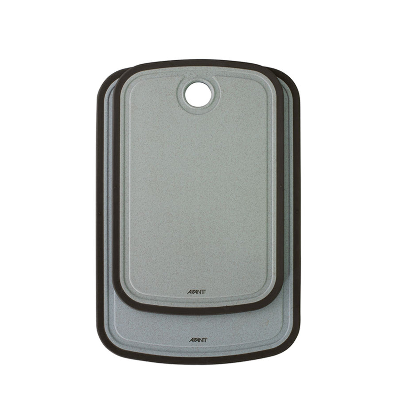 Prep food while safeguarding our planet’s precious resources with the Avanti® Eco Cutting Boards. These durable and lightweight boards are made from environmentally friendly wheat straw _x001F_bre that will not splinter, crack or warp, nor harbour bacteria or absorb unwanted _x001E_avours and odours. Ideal for slicing, dicing, and chopping, they are easy on knives and can be used on both sides. They feature a non-sip edge keeping the board in place whilst in use. A juice groove around the perimeter captures liquid extracted from cutting produce, minimising mess and making clean up a total breeze!