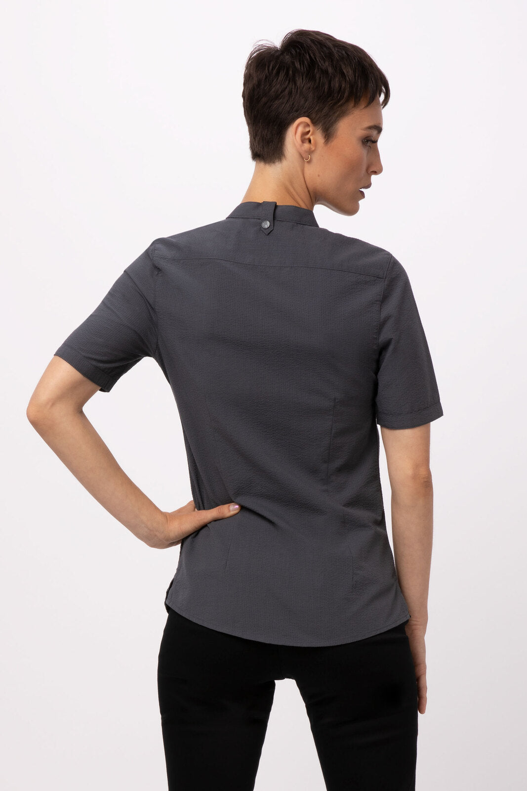 The Women’s Seersucker Shirt offers clean lines and rich textures that bolster confidence. All movements will be fluid and with purpose in this must-have shirt for the front of the house. Cut specifically for women, the Seersucker Shirt is an elegant addition to any dress code with a mandarin collar and flattering fit.