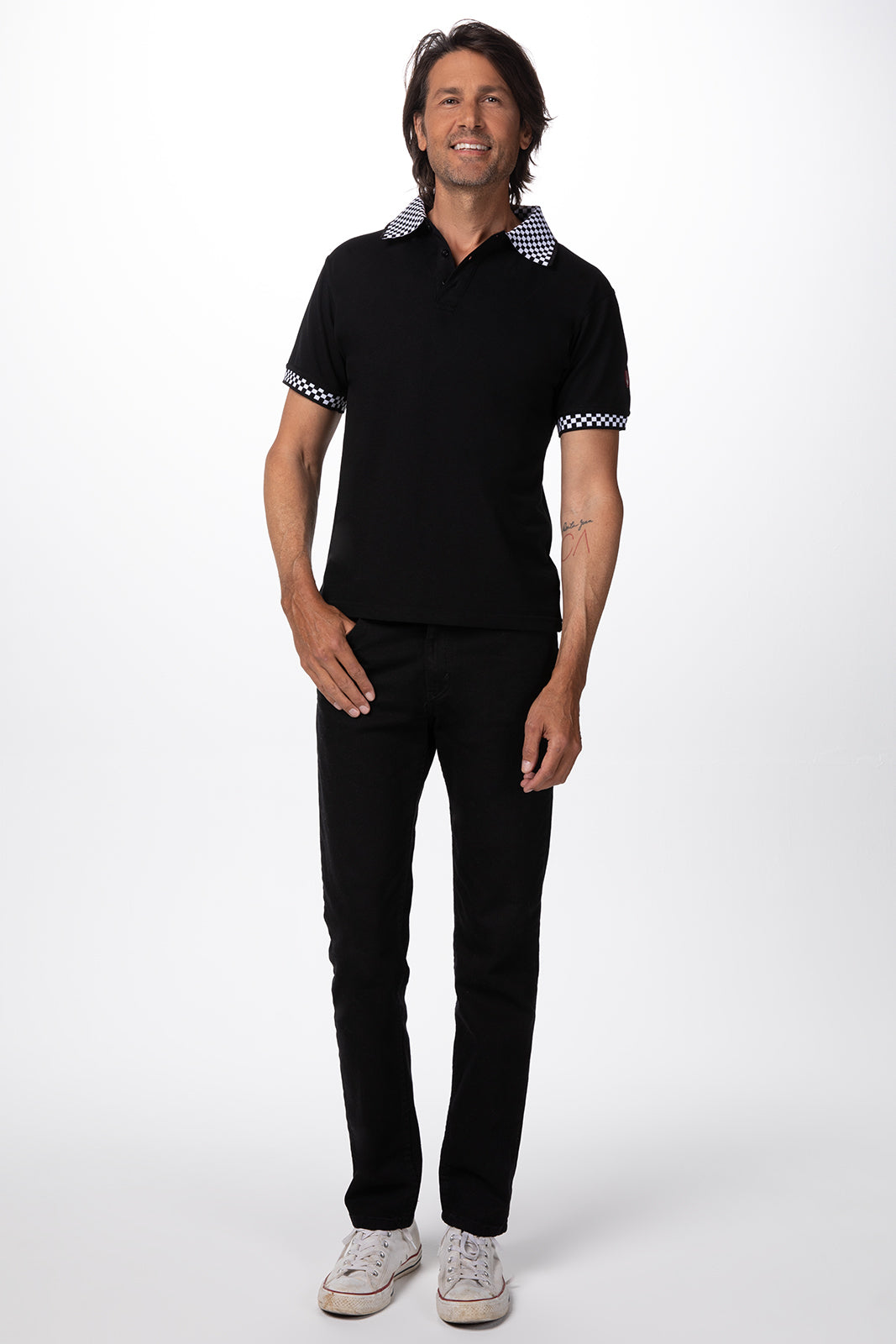 The Black Polo with Checked Cuff and Collar shirt is a great shirt for the front and back house. This shirt is made of soft, durable poly/cotton with the Black and White features on the the collar and the cuff trim. A professional looking shirt with the Chef Works logo on the left sleeve.