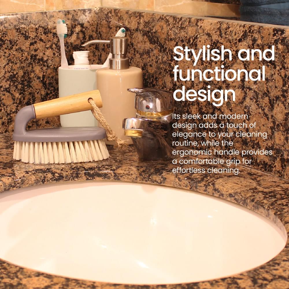With its unique triangular head, this brush effortlessly cleans flat, curved, and corner areas in the bathroom. It reaches into tight spaces and corners, making it a versatile tool for thorough bathroom cleaning.