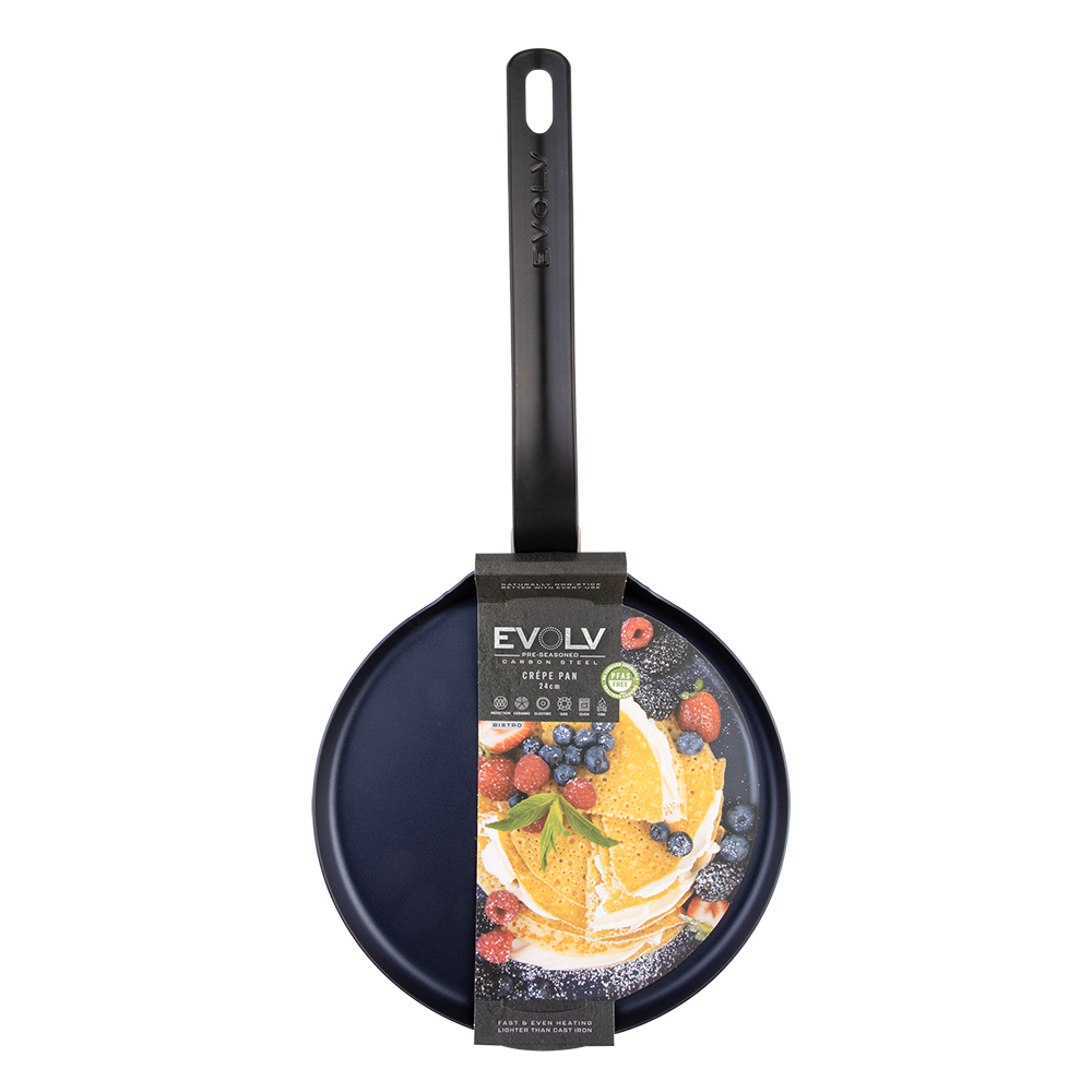 The Evolv 24cm Carbon Steel Crêpe Pan is designed for precision cooking where control matters. Crafted from heavy-gauge 2mm carbon steel, it heats quickly and evenly, delivering consistent browning across delicate crêpes, pancakes and flatbreads.
