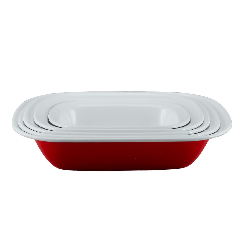 Falcon Enamel 5 Piece Oblong Pie Dish Set 20 (24/26/28/30cm) - Red with White (Deluxe 2-Tone)