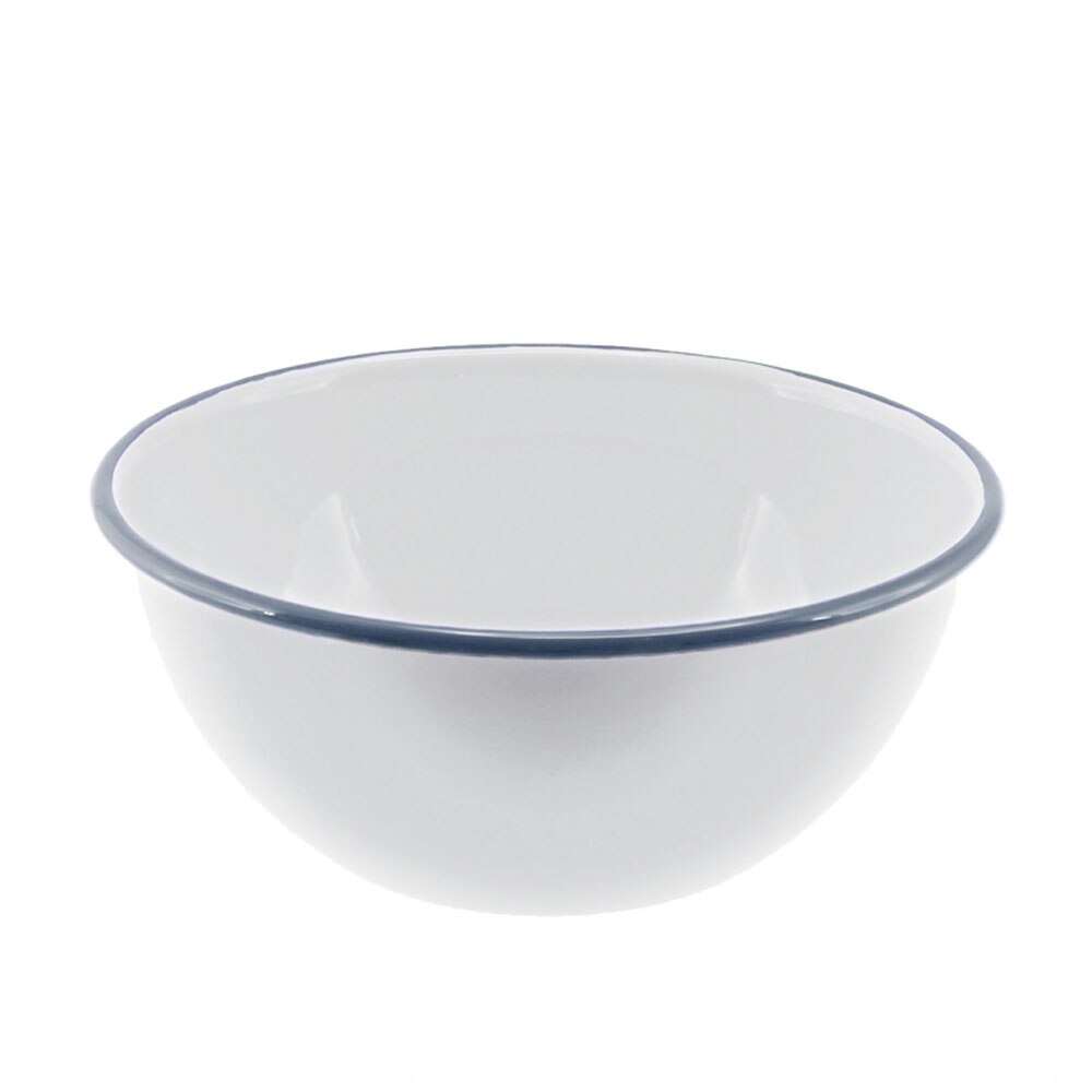 Falcon Enamel Deep Cereal Bowl 16cm - White with Grey Rim