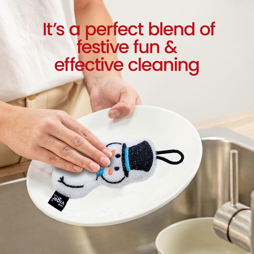 Celebrate the holiday season while keeping your kitchen spotless with the Vigar Frosty the Snowman Scrubber Sponge - 3 Pack. Perfect for tackling both light and heavy-duty cleaning tasks with a festive twist.