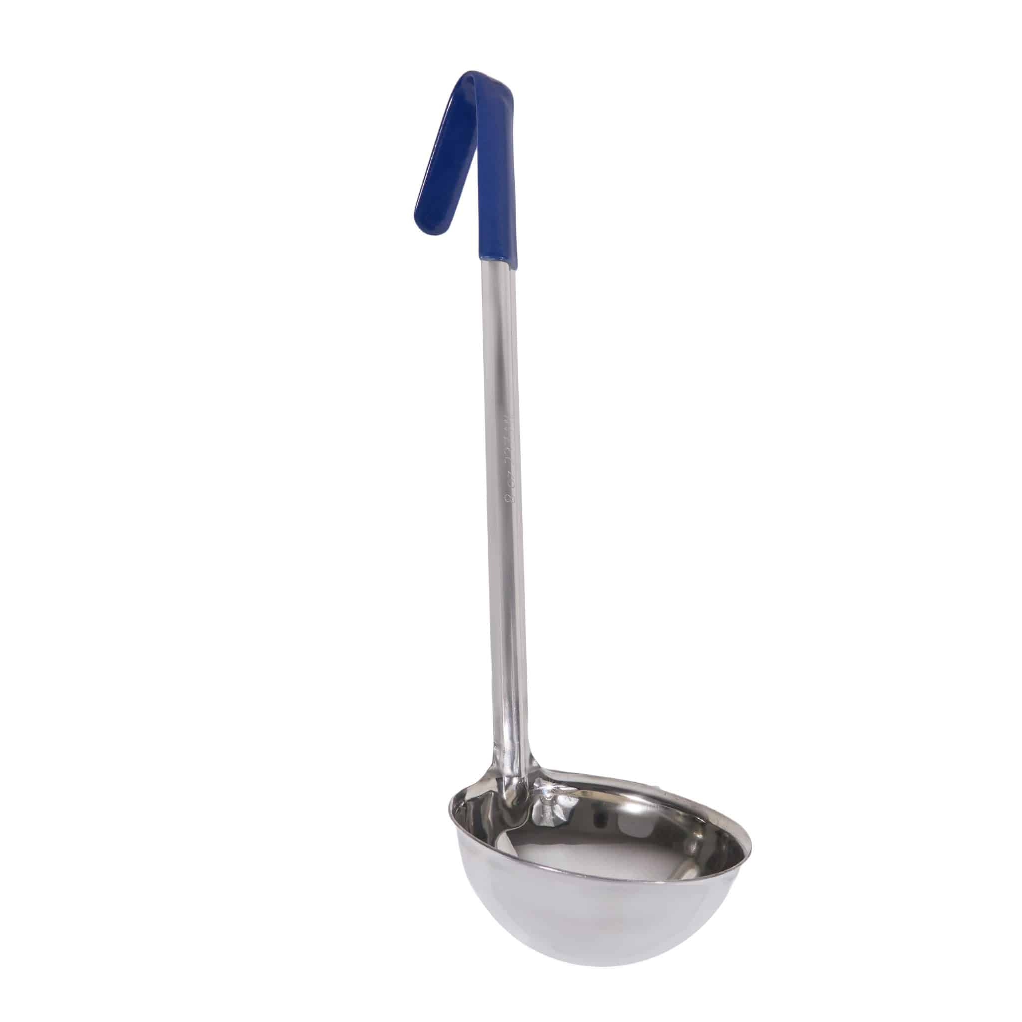 Perfect for measuring and scooping, this KH Ladle Stainless Steel Portion Control Blue 240mL / 8oz is the perfect addition to any busy kitchen!