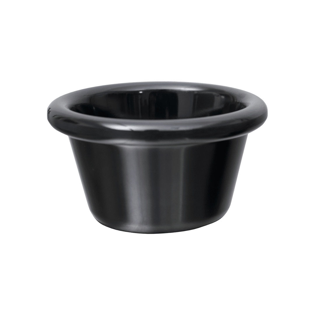 Present your unique side sauces elegantly using this KH Ramekin Black 80mL.