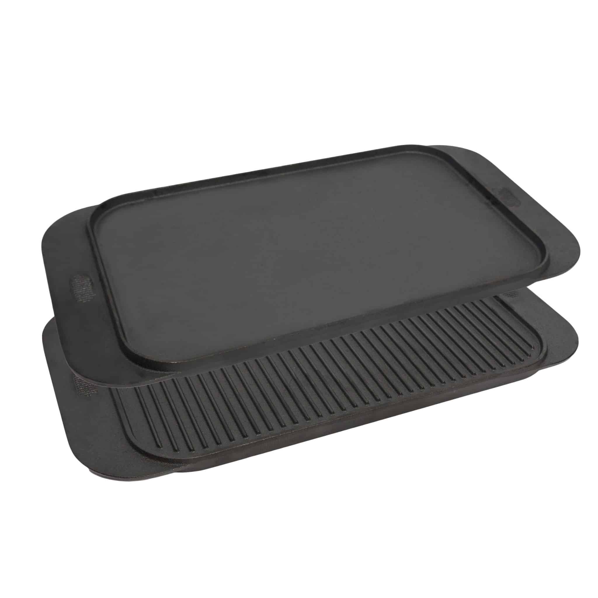Cast iron construction holds heat exceptionally well, helping food cook evenly while developing deep flavour and caramelisation. The large rectangular cooking surface provides ample space for preparing multiple items at once, making it suitable for both home kitchens and hospitality environments.