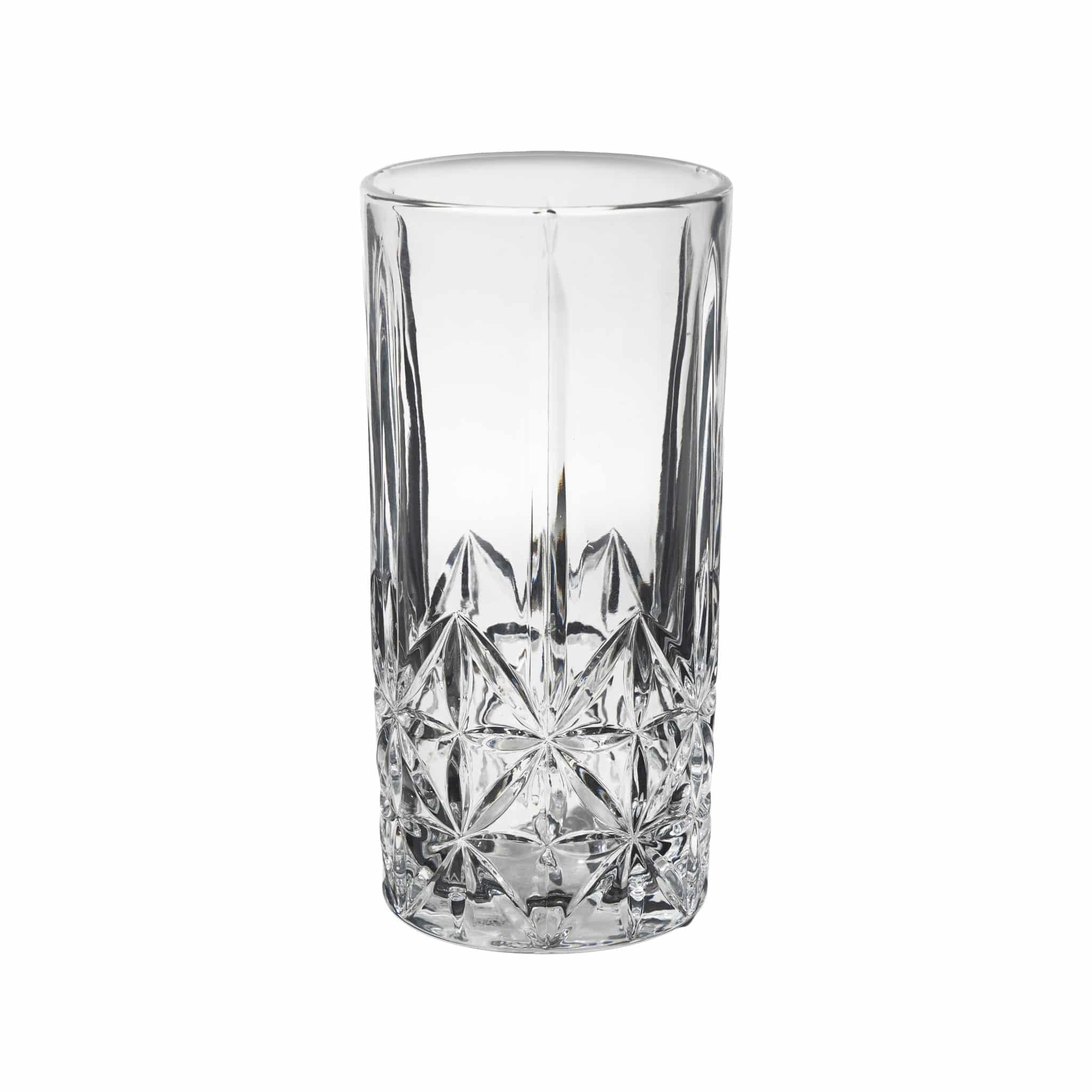 KH Sheffield Hi-Ball Glass Leondards combines timeless design with everyday functionality, offering a refined drinking experience for whiskey enthusiasts and cocktail lovers alike. Crafted with a classic cut-glass pattern, it features a solid, weighty base for enhanced stability, a crystal-clear finish to showcase your drink’s color, and a textured surface for a secure grip. Ideal for neat pours, on the rocks, or mixed drinks, this glass is perfect for both casual sipping and special occasions.Vintage-Inspired Sophistication for the Modern Drinker