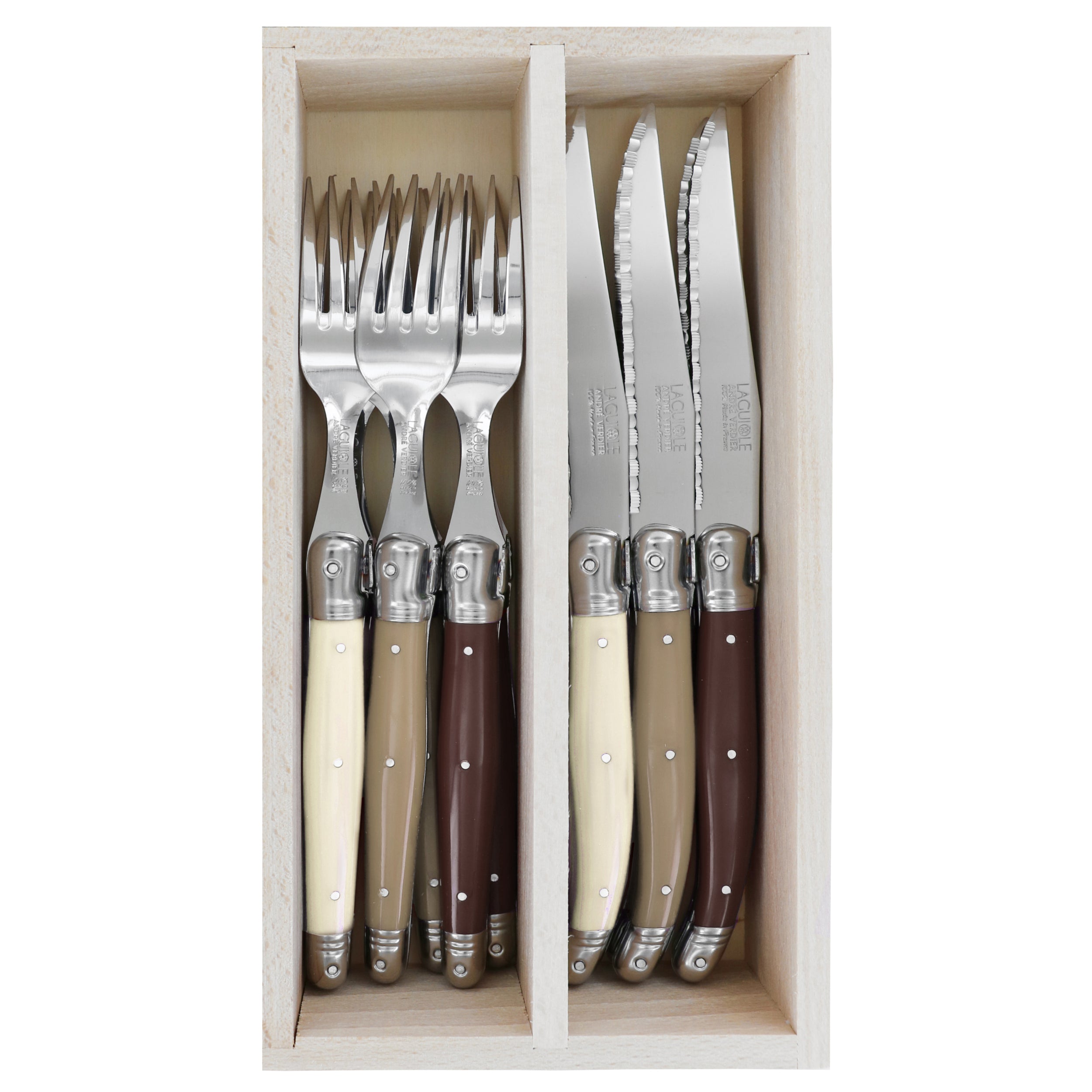 Laguiole André Verdier Cutlery Set 12 Piece In Tray - Assorted A