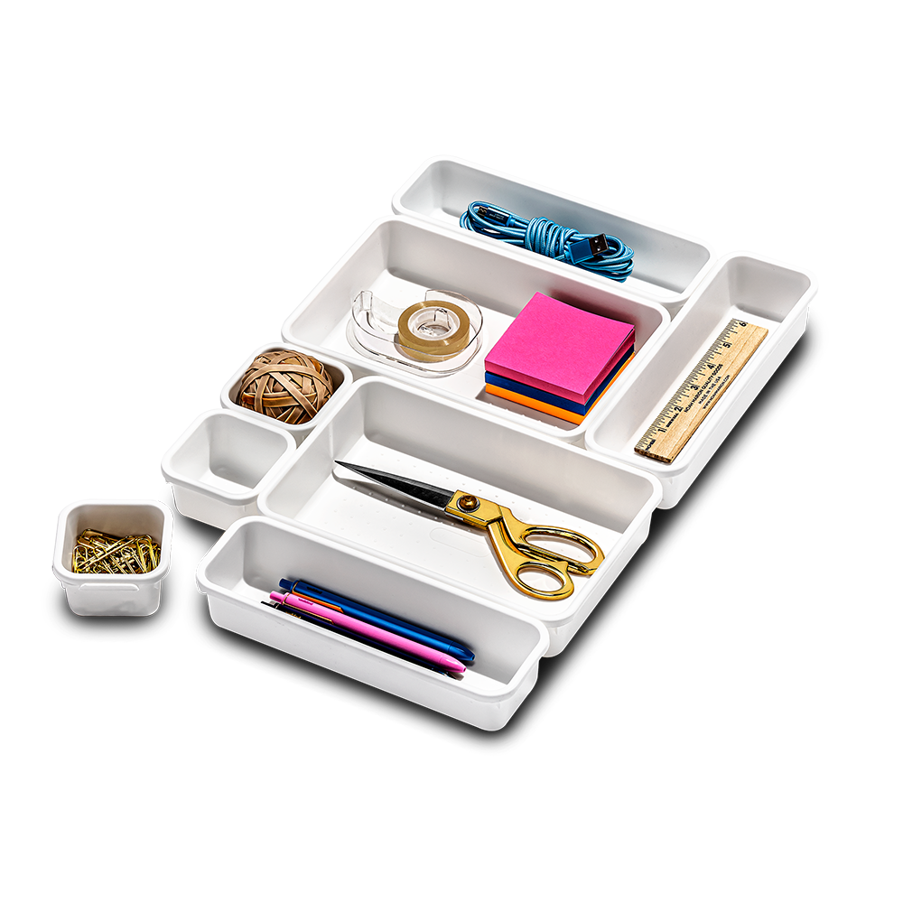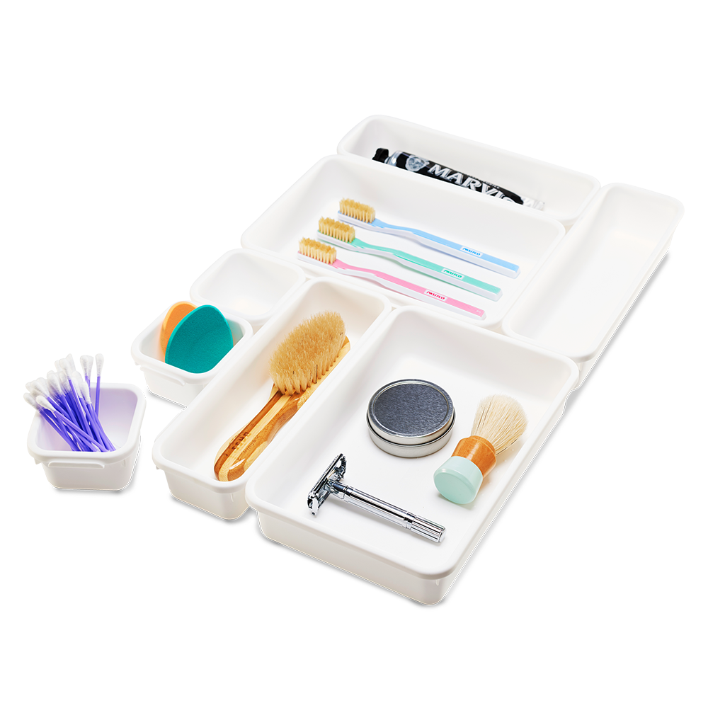 The set allows you to neatly organise everything, from kitchen utensils to bathroom essentials with the versatile bins of three different sizes.