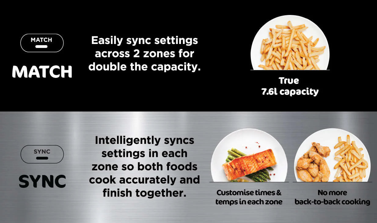 Ninja's unique DUAL ZONE TECHNOLOGY™ lets you Match or Sync your cooking.