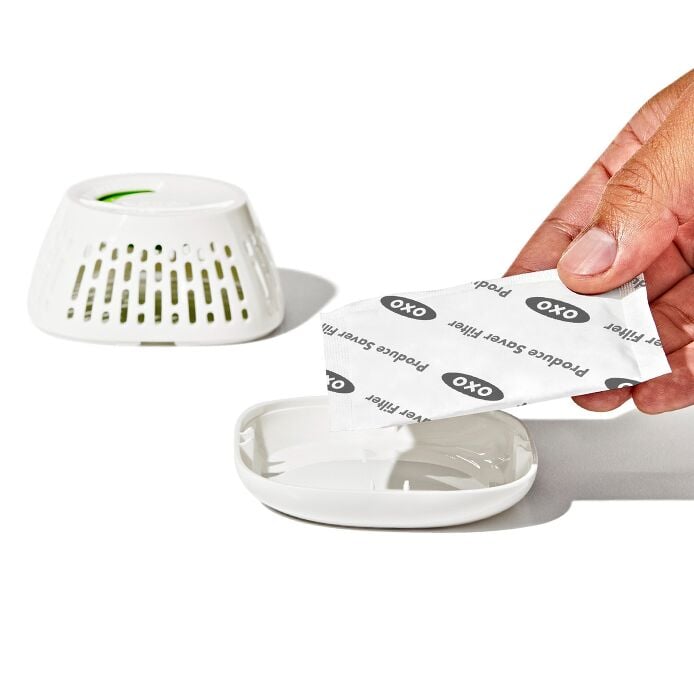 The OXO Produce Saver Crisper Drawer Inserts help slow the ripening process by absorbing ethylene gas, which many fruits and vegetables naturally release as they mature. By reducing ethylene build-up inside your refrigerator’s crisper drawer, these inserts help prolong shelf life and minimise food waste.