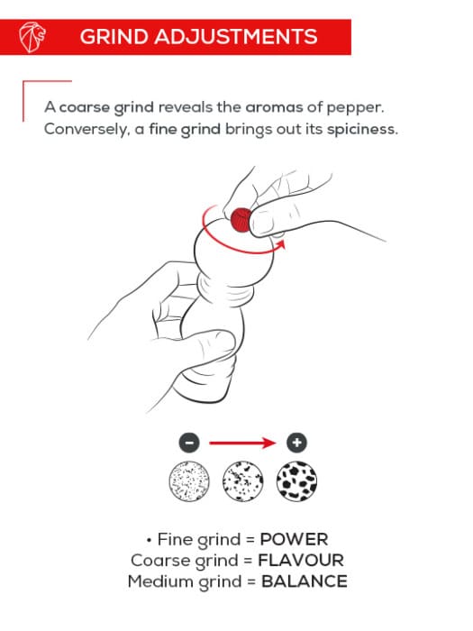 - Only use peppercorns in the pepper mill, do not use salt or other spices.