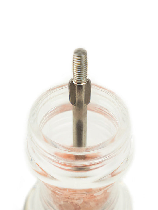 For those keen cooks who like to use wet sea salt in their food preparation, the Nancy 18cm salt mill is a jewel of performance. It's Peugeot's innovative Zirconia mechanism is corrosion-resistant and equipped with a blade that stirs the salt, aerating and guiding it to ensure a constant flow. With this exclusive mechanism that guarantees ultra-efficient grinding and a function to adjust the coarseness of your salt crystals, this salt mill will be an essential kitchen companion for years. Timeless in design, and contemporary in style.or those keen cooks who like to use wet sea salt in their food preparation, the Nancy 18cm salt mill is a jewel of performance. It's Peugeot's innovative Zirconia mechanism is corrosion-resistant and equipped with a blade that stirs the salt, aerating and guiding it to ensure a constant flow. With this exclusive mechanism that guarantees ultra-efficient grinding and a function to adjust the coarseness of your salt crystals, this salt mill will be an essential kitchen companion for years. Timeless in design, and contemporary in style.