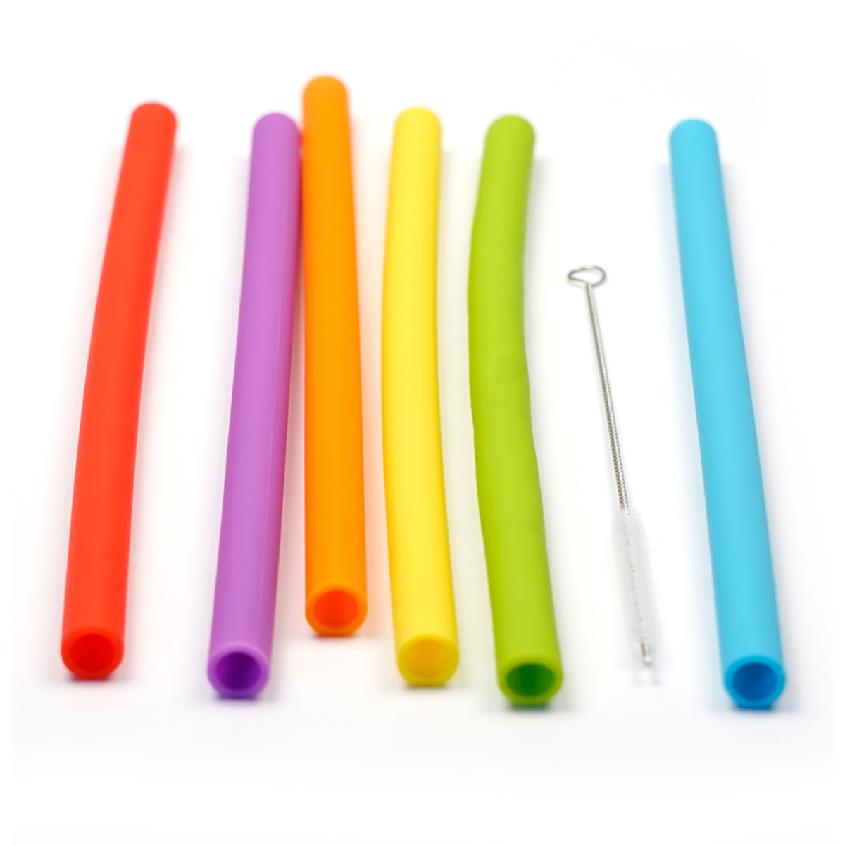 RSVP Silicone Smoothie Straws With Brush Set 6 25.5cm - Pink/Red/Orange/Yellow/Green/Blue