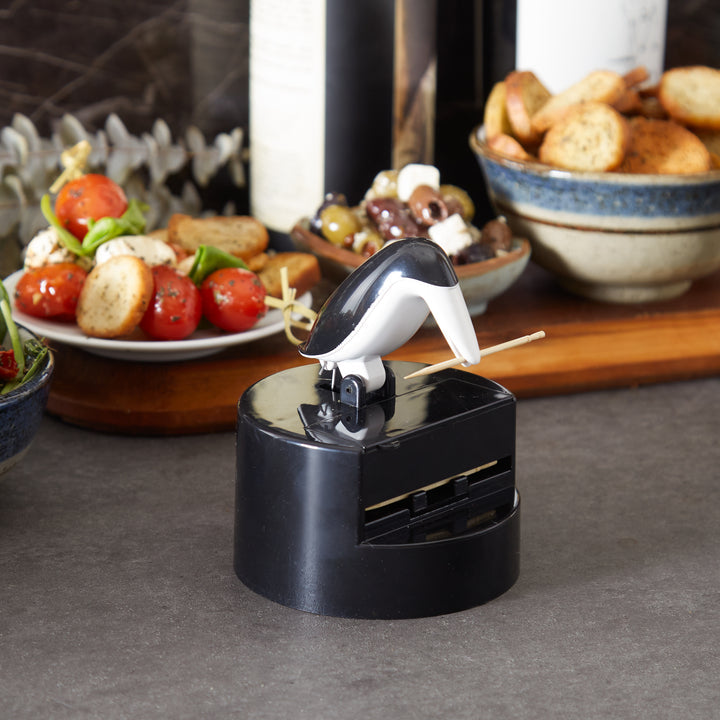 The RSVP Willie Woodpicker adds character to entertaining while offering a clever, hygienic way to dispense toothpicks. Crafted from sturdy BPA-free ABS plastic, this vintage-inspired design delivers both function and conversation value at the table or bar.