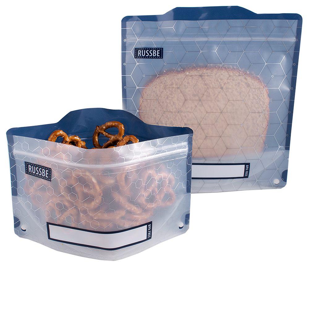 Russbe Reusable Snack & Sandwich Bag Set – 4 Piece – Metallic Hexagrid