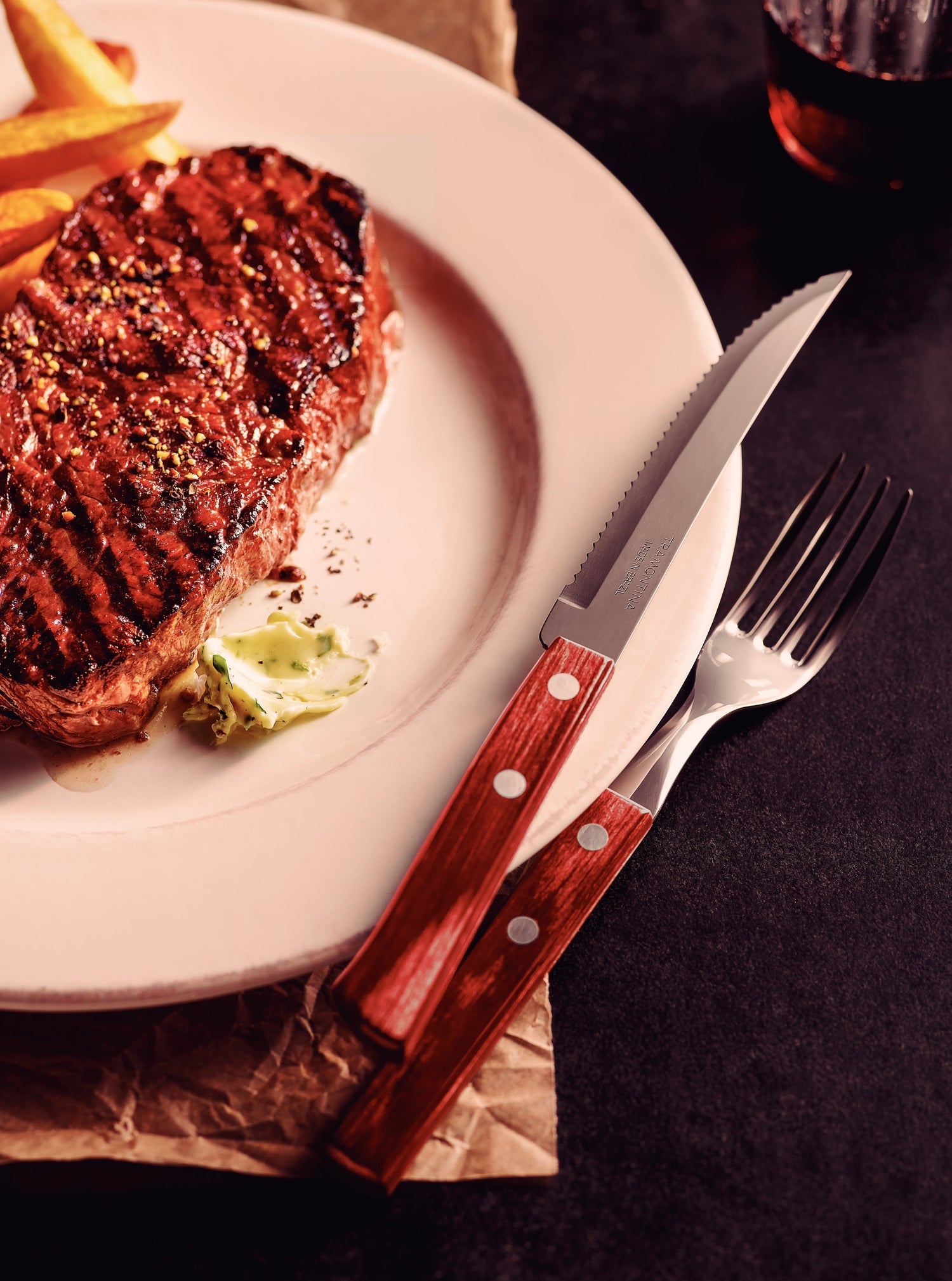Do beautifully well with your barbecue and table service with Tramontina's 12-piece stainless steel flatware set with red Polywood handles. A complete set from the Churrasco line, offering knives and forks made of stainless steel and treated Polywood handles, resistant to shock and high temperatures, which adds beauty, high quality and durability to your table. It is the ideal choice for those who want everyone to have a great experience when savouring a good barbecue.