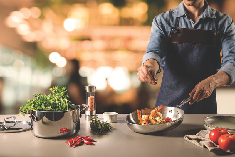 Tramontina's 30 cm 3,4 L shallow stainless steel frying pan with the tri-ply body from the Grano line is an essential product for your kitchen. Combining convenience with a modern design, it is a sophisticated choice for serving at the table due to its high-gloss finish. Convenient and perfect for making a wide range of recipes, it is made with tri-ply body technology (stainless steel + aluminium + stainless steel), which speeds up the cooking process. Easy and quick to clean with its rounded corners, it can also be washed in the dishwasher on a daily basis. It has a 30 cm diameter, perfect for your kitchen demands. This versatile frying pan can be used on gas, electric, glass ceramic and induction cookers.