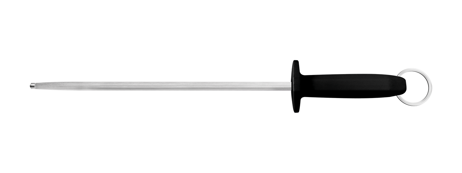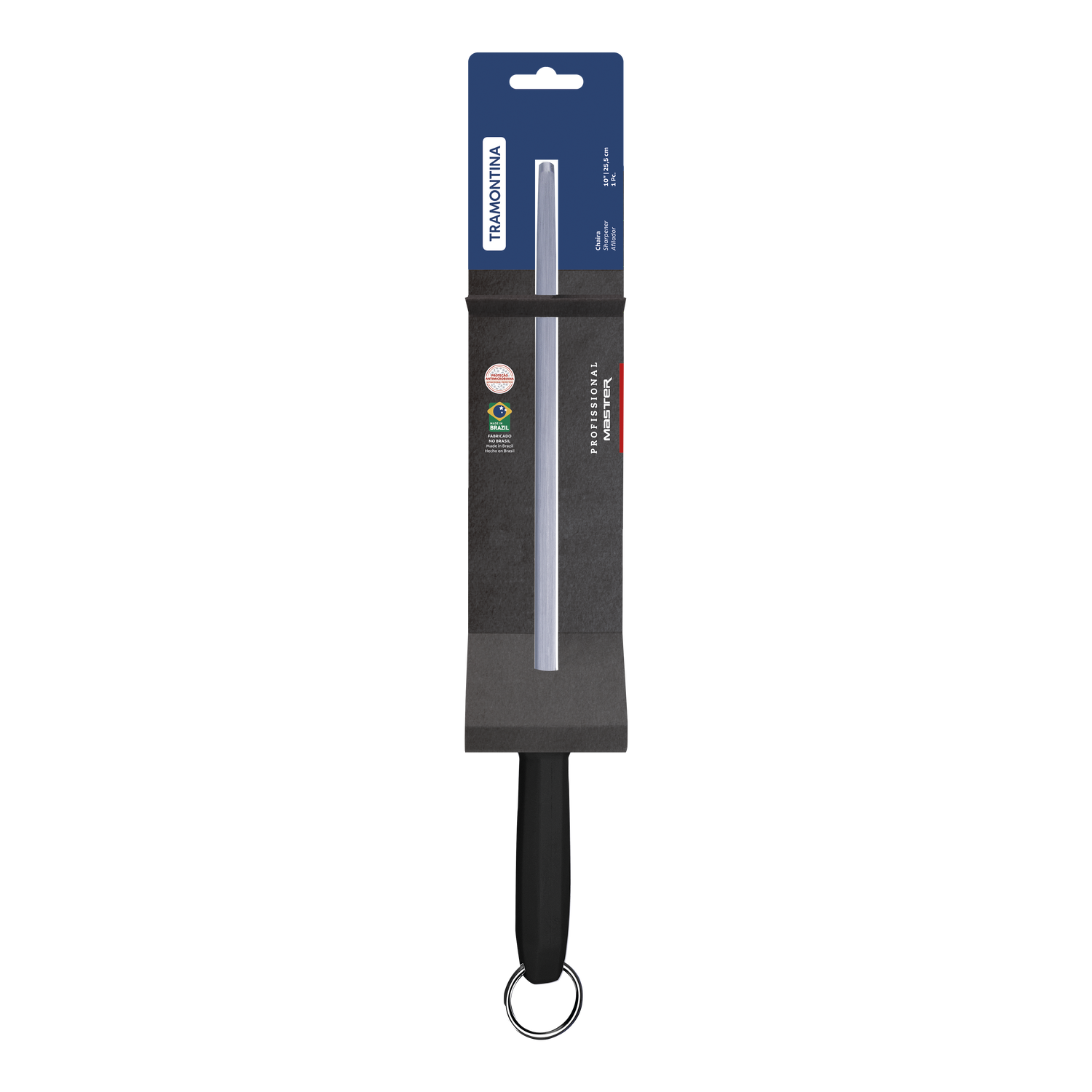 Tramontina has the pleasure of doing things well. And in the kitchen, to do things well, the knives must always be sharp! So, count on Tramontina Professional Master 10-inch grooved sharpener with carbon-steel stem and black polypropylene handle. With antimicrobial protection incorporated to its handle during the injection process, it inhibits the growth of fungi and bacteria throughout its service life. It has a polypropylene handle and a carbon-steel stem, which is coated with hard chrome, which provides performance in sharpening and high resistance!