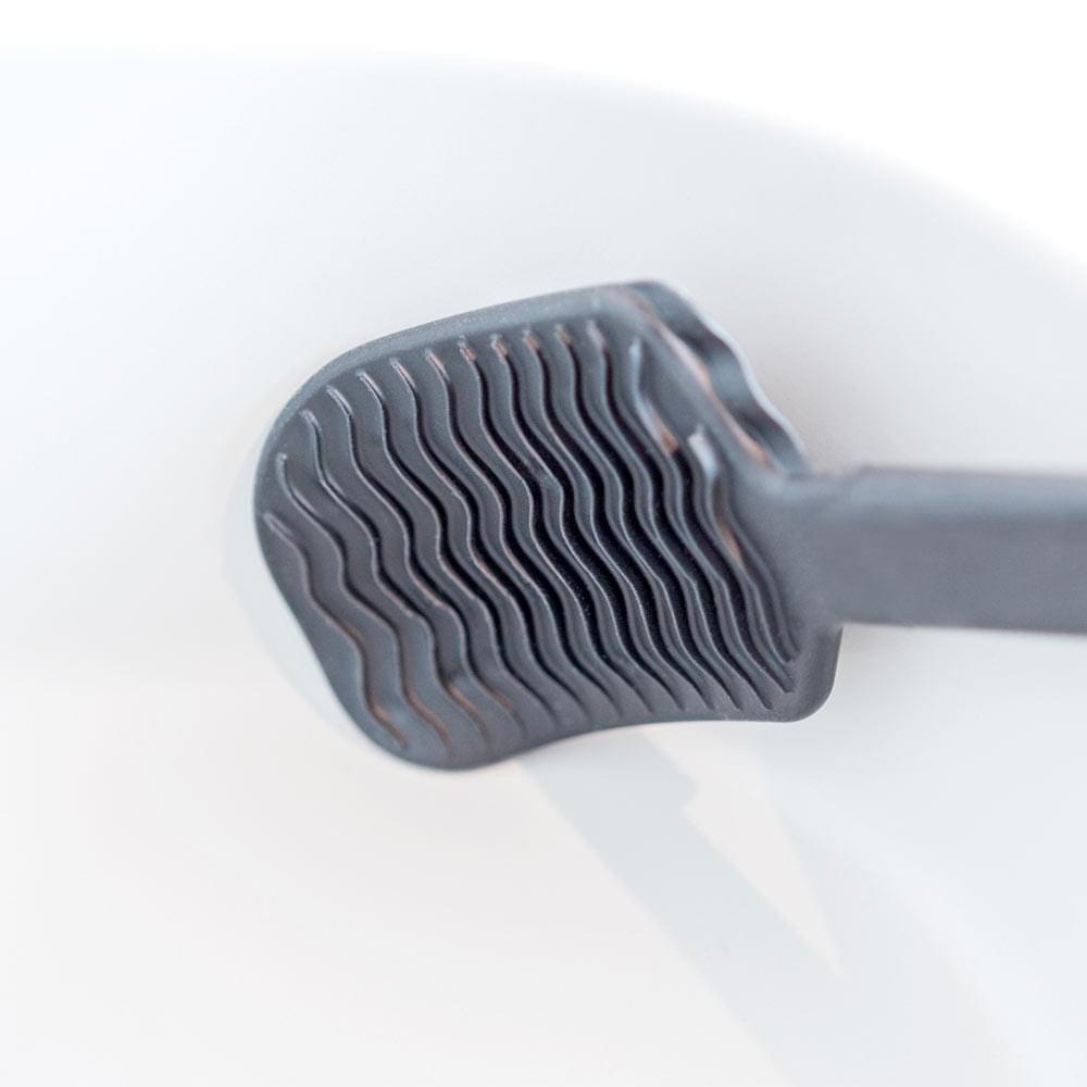 The silicone brush prevents dirt accumulation, making the cleaning process more efficient. The flexible rubber spatula is specifically designed to reach every corner of the toilet, including under the edge and the siphon, ensuring comprehensive cleaning.