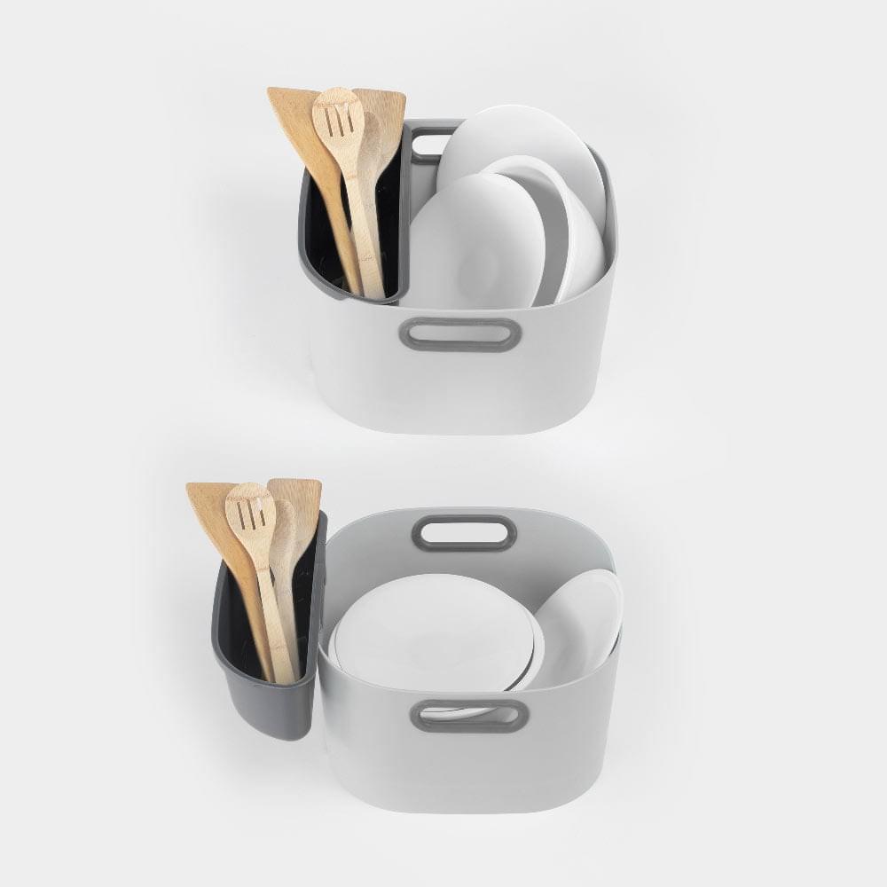 This washing up bowl comes with a convenient utensil tray that fits perfectly inside the bowl. It provides a designated space to keep your utensils organized and within reach, making it convenient to wash and dry your cutlery, spatulas, and other kitchen tools.