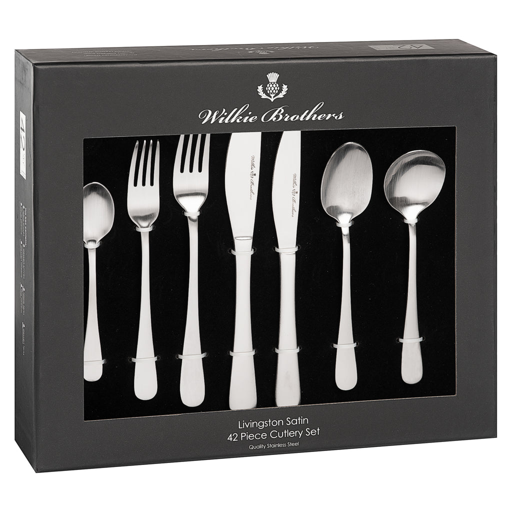 Wilkie Brothers cutlery collections feature classic and timeless designs, ensuring your dinner table looks elegant for formal occasions and casual dining alike. The Livingston Satin range is crafted from high quality stainless steel and is finished with a brilliant high-mirror polish. Balanced for comfort in the hand and with seamless construction. Wilkie Brothers guarantees all cutlery to be free from material and manufacturing defects for 10 years